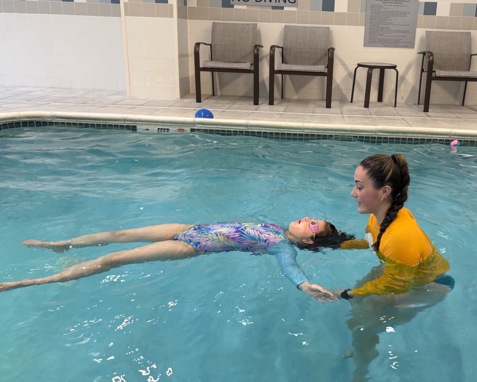 These classes are for children who are comfortable floating on their back, floating on their belly and going under the water independently. Each class has 3 students.