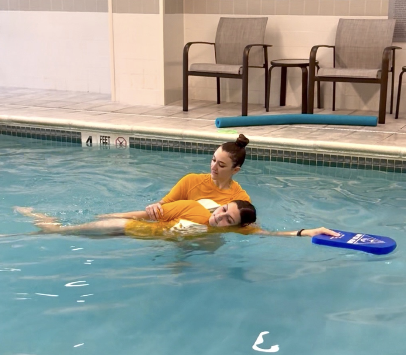 These classes are without a parent or caregiver in the pool, with 3 students in each class.